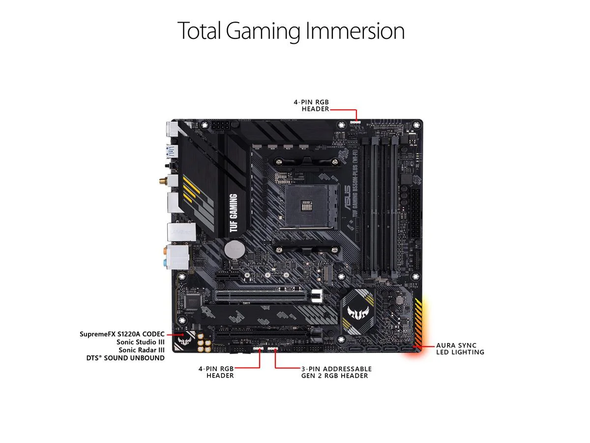 The ASUS TUF GAMING B550-PLUS WiFi II comes battle-hardened with game-ready features and proven durability. Engineered with military-grade components, an upgraded power solution and a comprehensive set of cooling options, this motherboard delivers rock-solid performance and unwavering gaming stability for AMD 3rd Gen Ryzen CPUs.