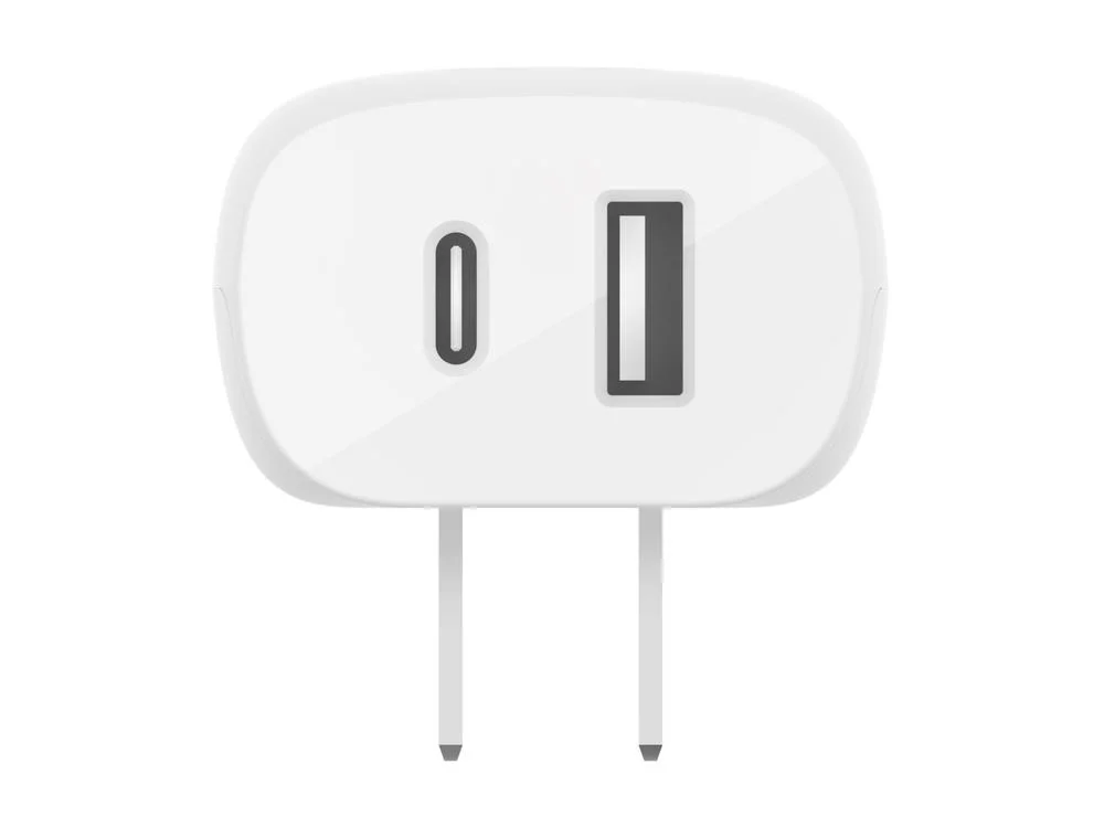 The Belkin BoostCharge WCB007DQWH is a compact 37W dual-port wall charger featuring USB-C Power Delivery 3.0 and PPS technology. Designed to fast-charge two devices simultaneously, it delivers optimized charging speeds for iPhone, Samsung, and other USB-C and USB-A compatible devices.