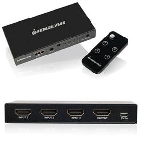 Connect up to four HDMI source devices to one HDMI display with IOGEAR's 4K 4-Port HDMI Switch. For easy access and convenience, this switch has one HDMI port on the front panel that can be used to connect your portable devices, such as laptops, tablets or digital cameras. The three additional HDMI ports on the back provide permanent connections for your Blu-ray players, set-top boxes, video game consoles and more. Switching between HDMI source devices can be done via the front panel pushbuttons or IR remote control. Easy identification of source inputs using the front panel LED indicators for each source device.