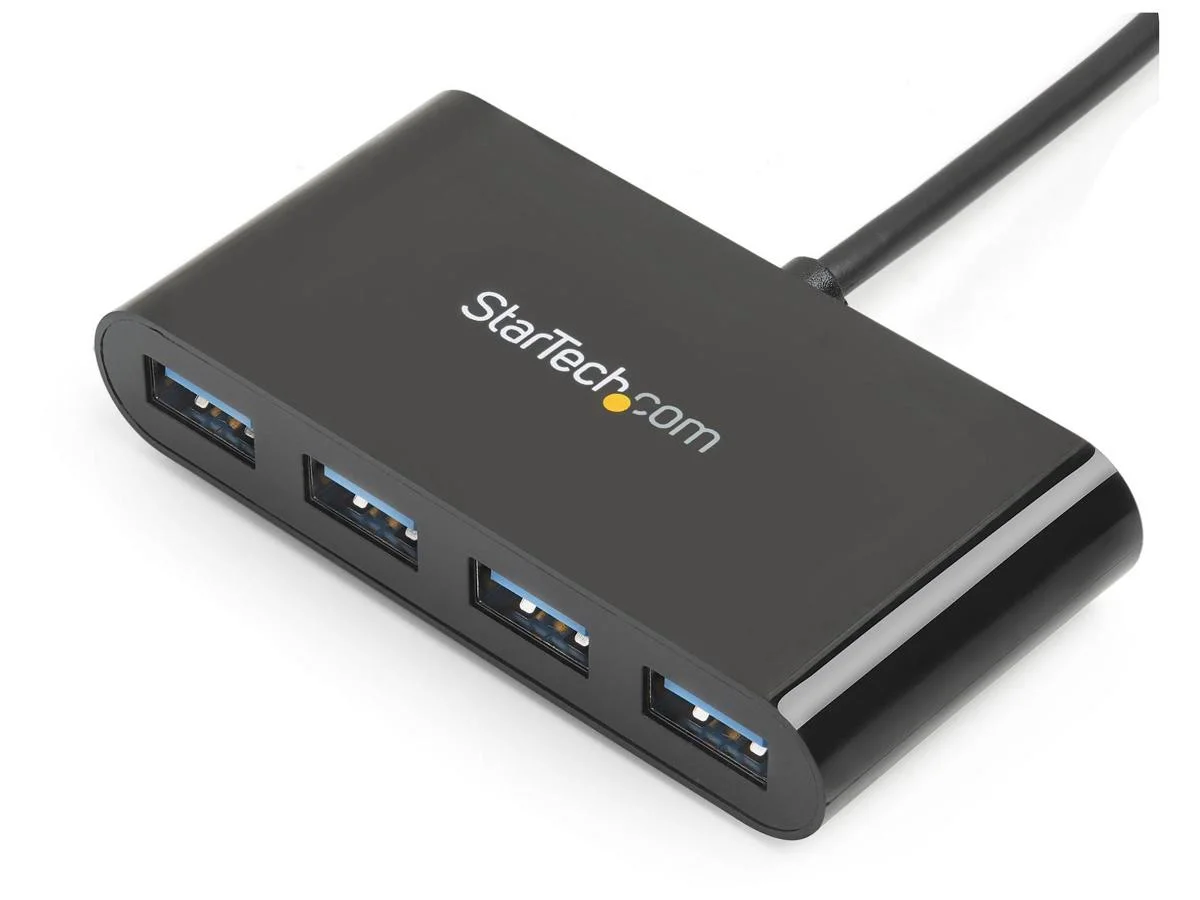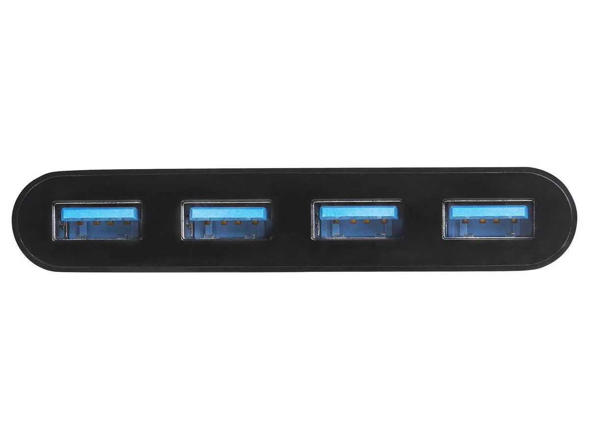 Here’s a must-have accessory if you have a USB-C™ equipped computer but need more USB-A ports. This portable USB 3.2 Gen 1 hub expands your laptop or desktop connectivity by adding four USB Type-A ports through a single USB Type-C™ or Thunderbolt™ 3 port. And, because it’s USB bus-powered, you don’t need to connect an external power adapter, which makes travel more convenient and workstations less cluttered.