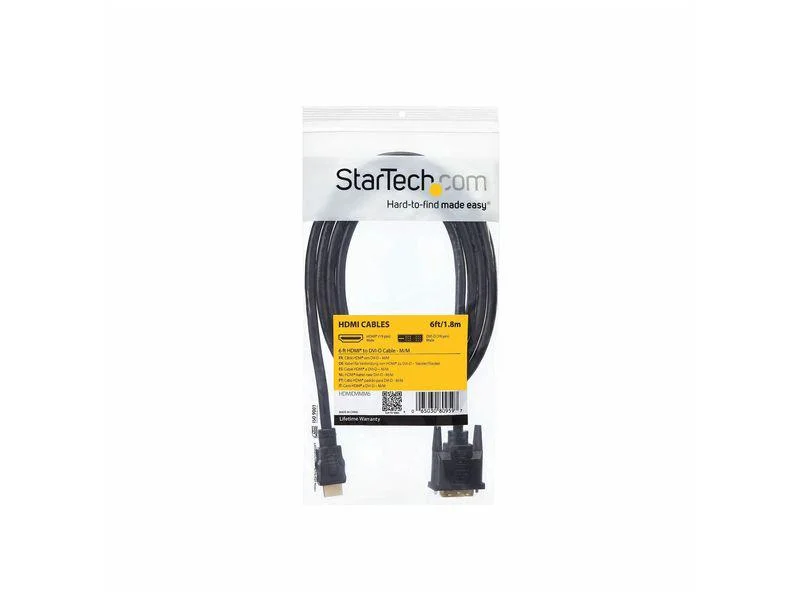 | Product Description: | StarTech.com 6ft (1.8m) HDMI to DVI Cable, DVI-D to HDMI Display Cable (1920x1200p), Black, 19 Pin HDMI Male to DVI-D Male Cable Adapter, Digital Monitor Cable, M/M, Single Link - DVI to HDMI Cord (HDMIDVIMM6) - adapter cable - 6 ft |