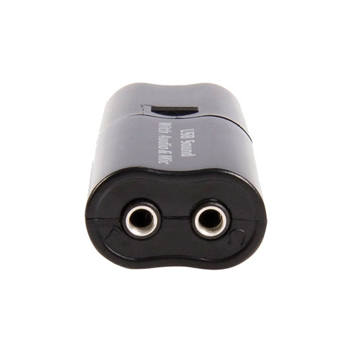 The black USB Stereo Audio Adapter External Sound Card from StarTech converts a USB port to an audio port, allowing you to add headsets and microphones to your computer without the need to unplug other devices.