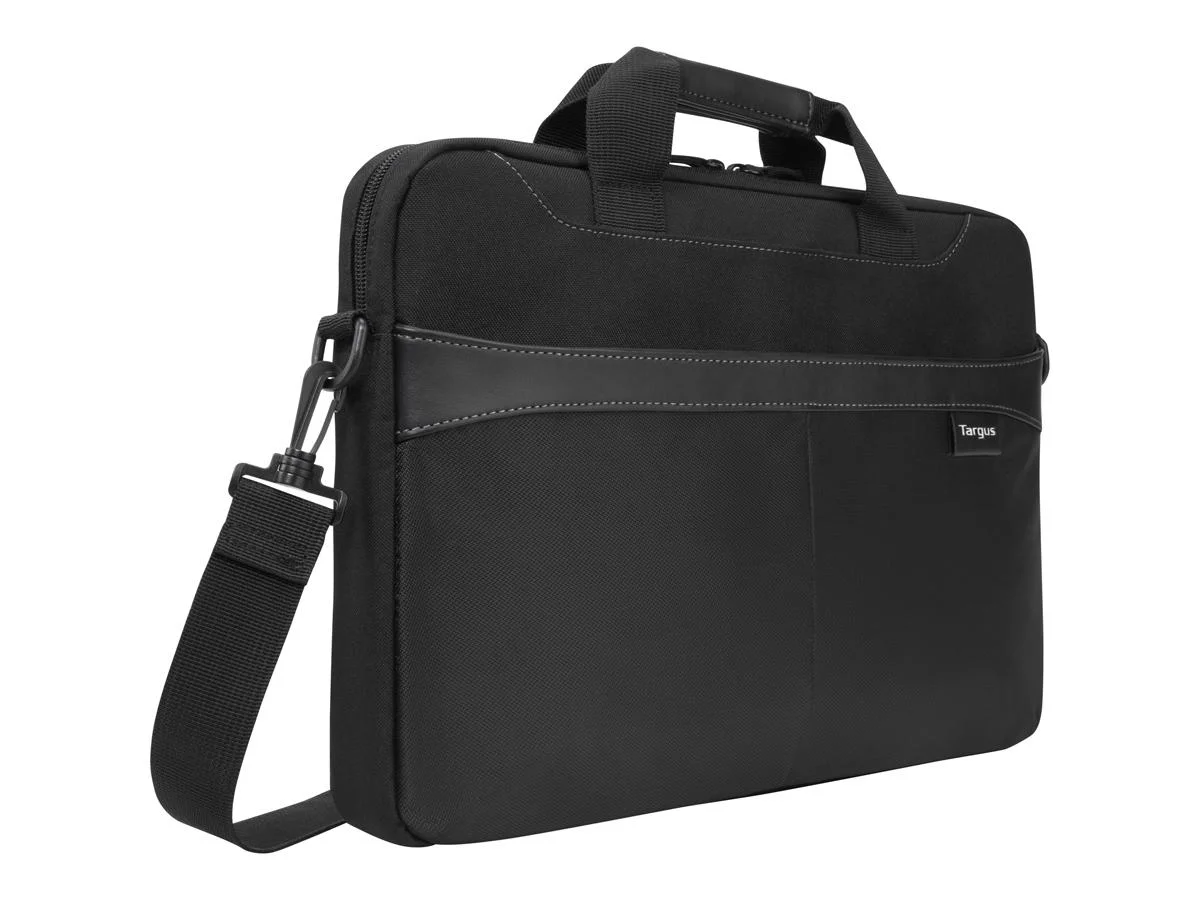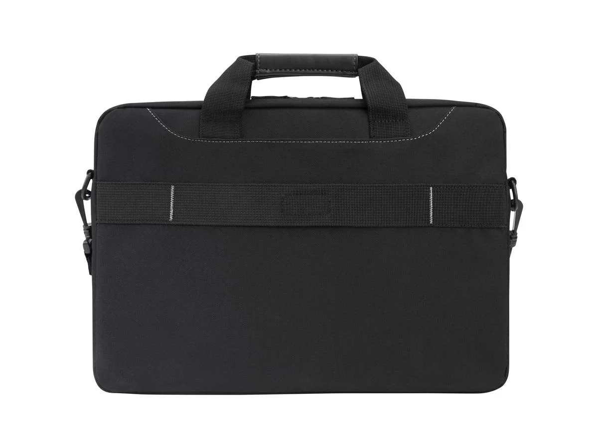 With convenient topload access, a padded laptop compartment and streamlined storage, the Targus Business Casual Slipcase offers everyday protection for laptops up to 15.6 inch. Slimmer than a briefcase and roomier than a sleeve, the case includes a removable shoulder strap, soft-grip handles and a trolley strap for slipping onto your roller bag for travel. Inside, a padded compartment secures your laptop and keeps documents or magazines handy. Take along a charger, smartphone, and other accessories in the zippered front pocket. A durable mix of fabrics and contrast stitching distinguish this lightweight, thin-profile case.