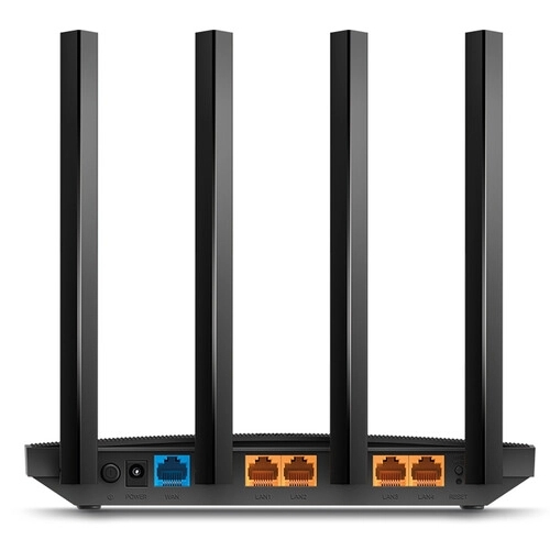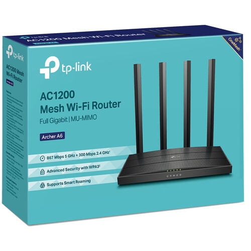 Enjoy fast and reliable Wi-Fi connections throughout your home for smooth video streaming, online gaming, and video chat experiences with the Archer A6 AC1200 Wireless Dual-Band Gigabit Router from TP-Link. Featuring four powerful external antennas that work alongside an internal one, this dual-band 802.11ac Wi-Fi router can transfer up to 1167 Mb/s over the 2.4 and 5 GHz frequencies with compatible devices. Beamforming and MU-MIMO technologies help to ensure strong connections while simultaneously communicating with up to two devices.