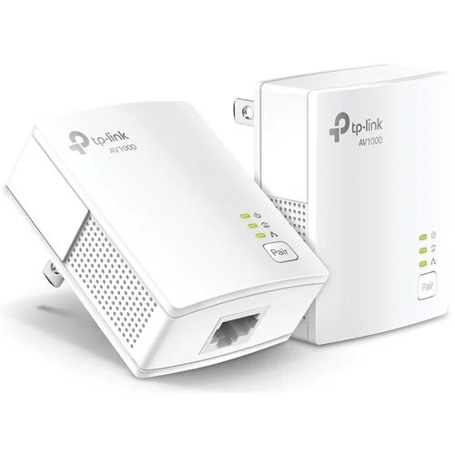 Quickly expand your wired Gigabit network to reach across your home with the AV1000 Gigabit Powerline Starter Kit from TP-Link. This kit includes two HomePlug AV2 compliant modules that plug into available two-pronged US wall outlets to reliably transfer data across up to 984.3' using your home's electrical wiring. Setup is easy. Simply connect one module to your router and the other to a remote device through using their respective Gigabit Ethernet ports, then press the pairing buttons to link them. Your data connection is secured with 128-bit AES encryption. The AV1000 Powerline Starter Kit supports the IEEE 1901, 802.3/3u/3ab standards and is designed to work with Windows, Mac, and Linux computers.